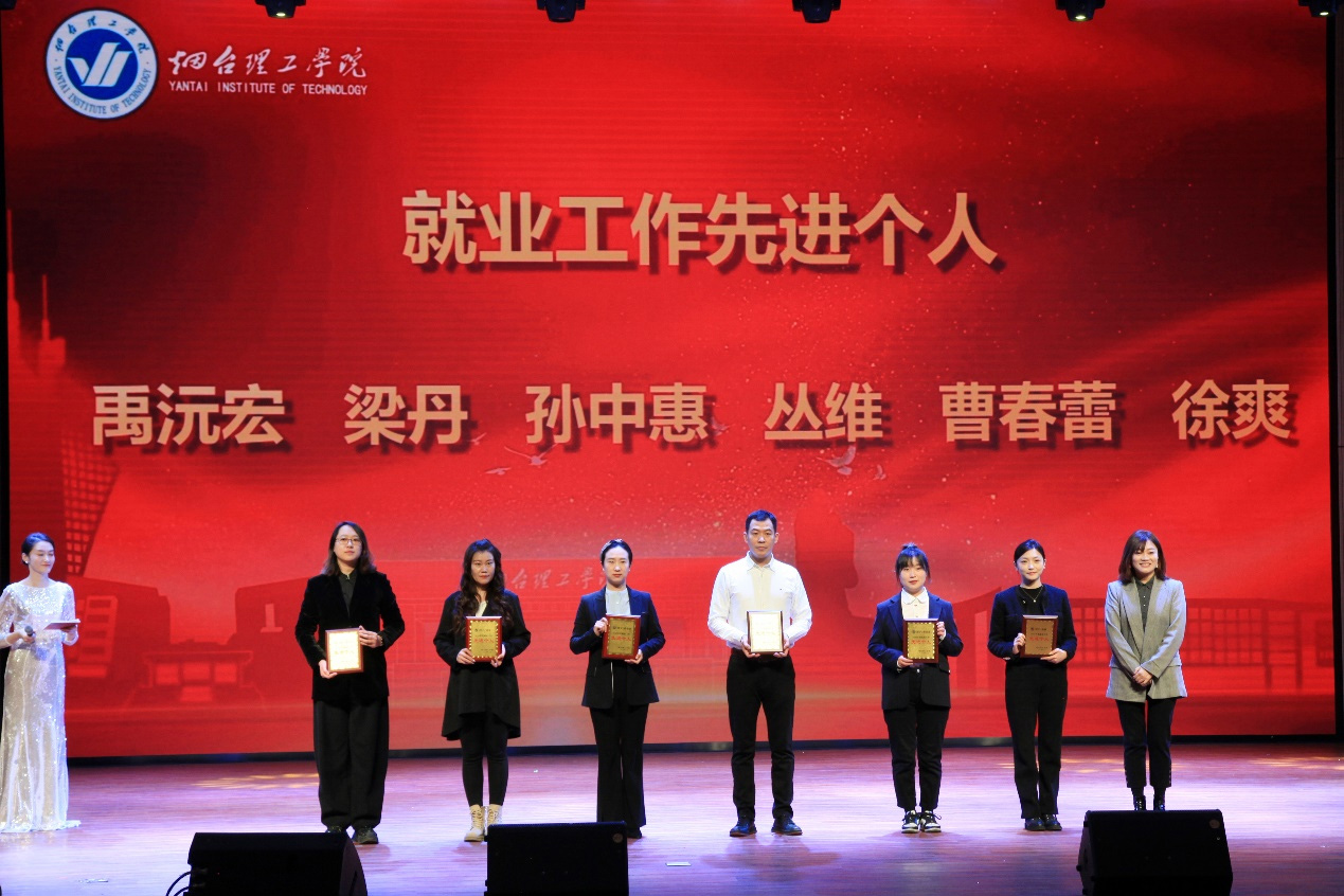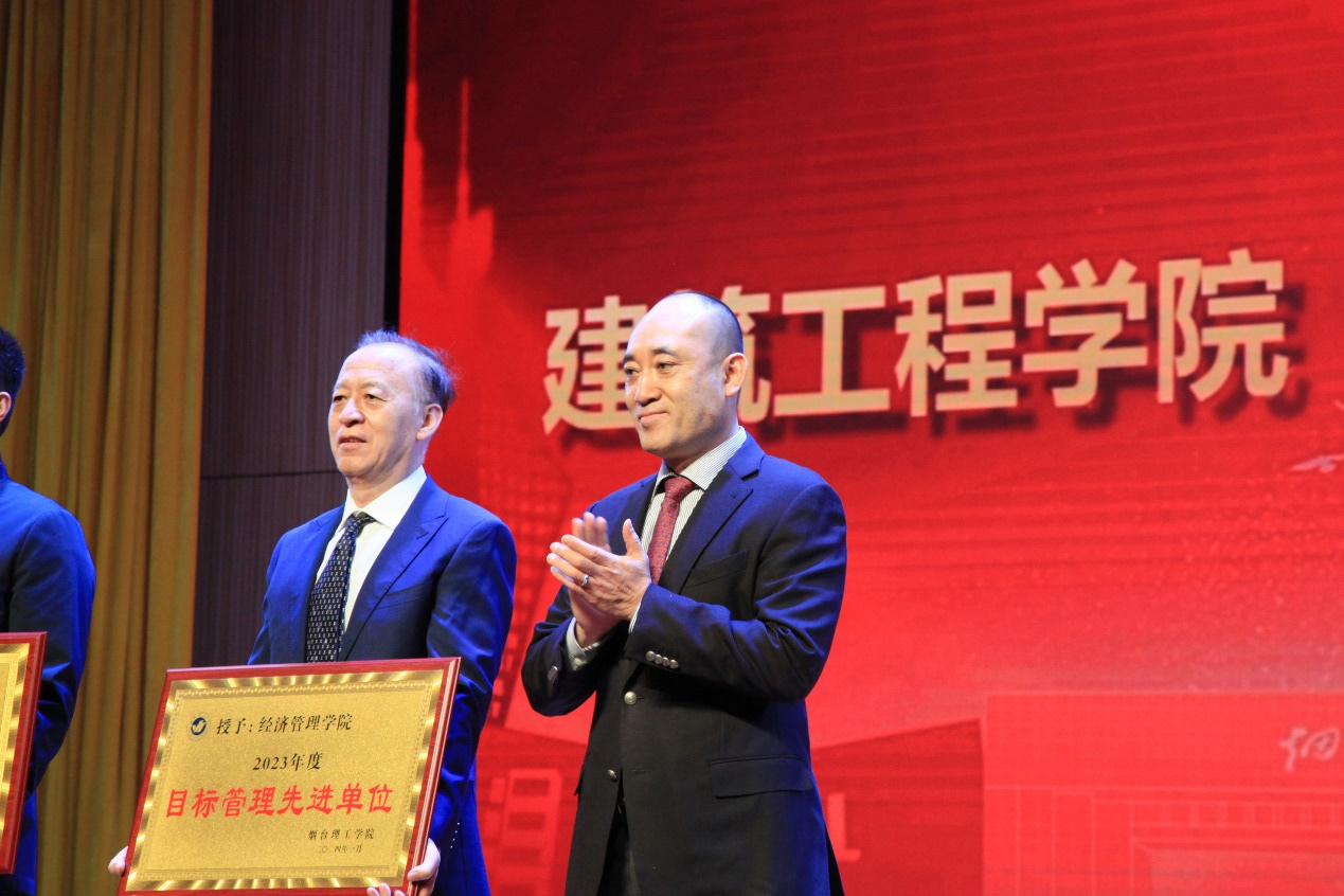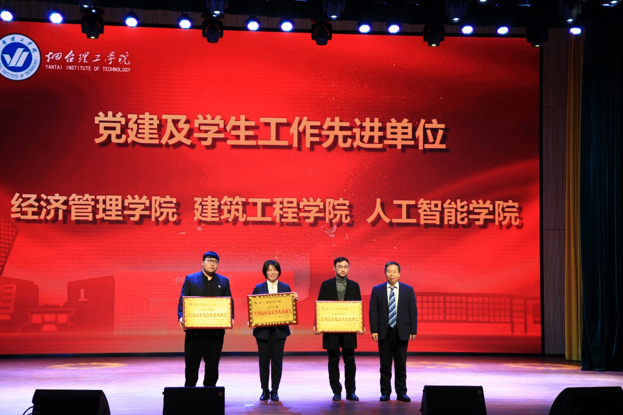 祥隆企業集團董事長、煙臺理工學院董事長辛軍及其他校領導為“目標管理先進單位”教學單位、“黨建及學生工作先進單位”等先進單位頒獎。