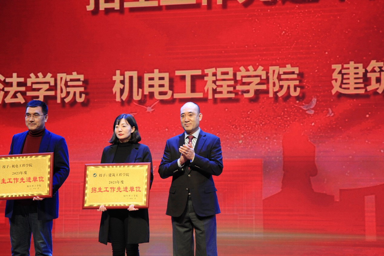 辛軍董事長及其他校領導為“招生工作先進單位”、“就業創業工作先進單位”等招生工作、就業創業工作先進單位和個人頒獎。