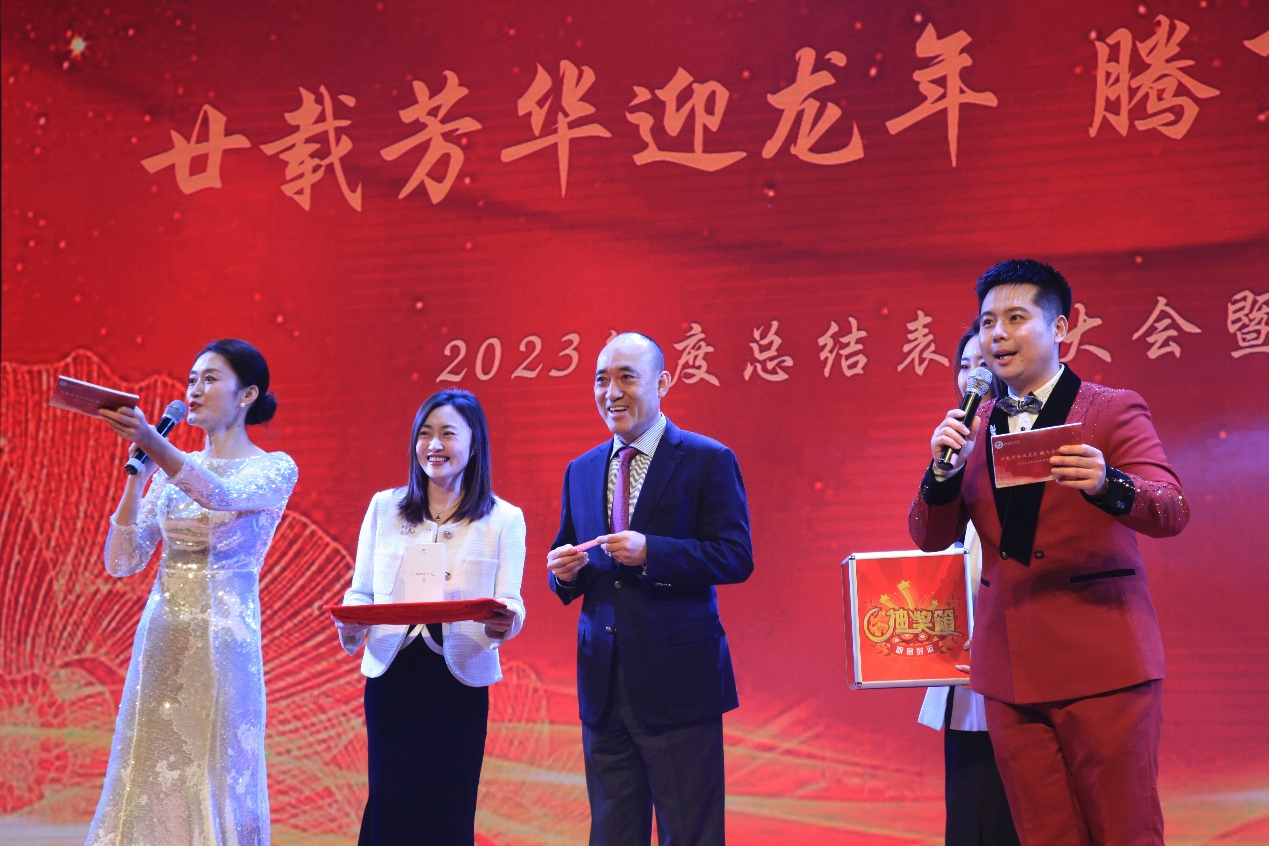 廿載芳華迎龍年,騰飛奮進煙理工。2024年1月16日下午2:00,煙臺理工學院2023年度總結表彰大會暨新年聯歡會在綜合樓一樓多功能廳隆重舉行。祥隆企業集團董事長、煙臺理工學院董事長辛軍,集團副總裁、學院董事會秘書長徐榮哲,煙臺理工學院校長于光輝,黨委書記盛國軍及全體校領導與教職員工歡聚一堂,共迎新年。