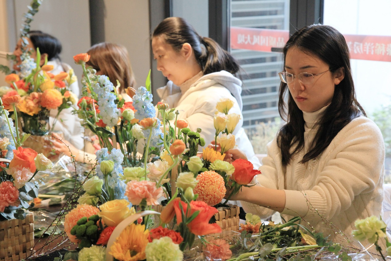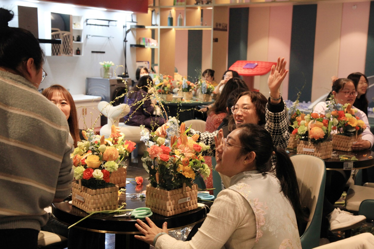 根據老師的講解,大家發揮自己的想象力和創造力進行創作。室內花香彌漫,洋溢著春天的氣息,隨著一剪一修的細致操作,一籃籃形態各異、色彩斑斕的插花作品逐漸呈現,它們不僅象征著祝福與美好,更是女員工們心靈手巧的見證。